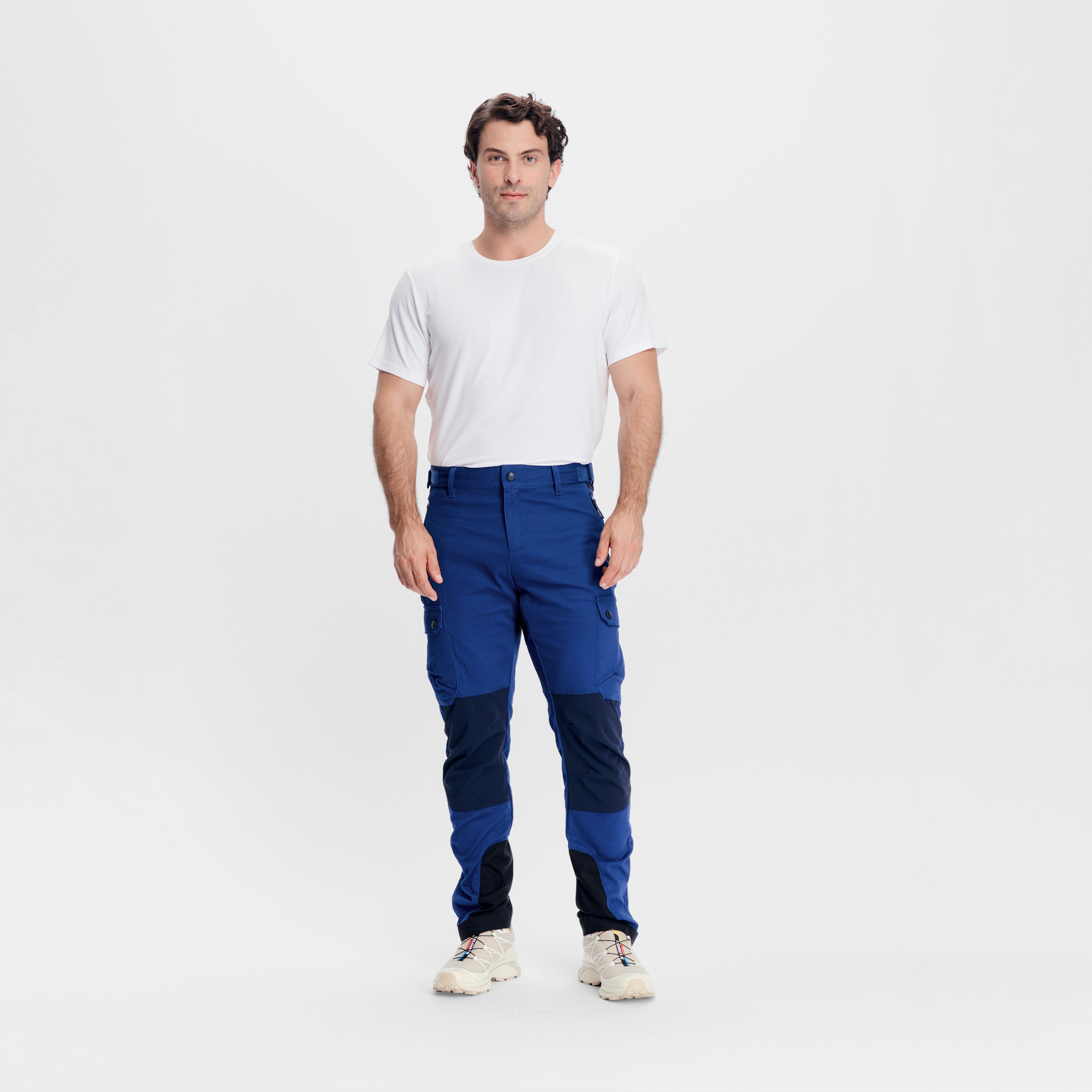Allsidige fritidsbukser i kraftig bomullstretch til herre fra Tufte. Buksene har cargolommer i sider med knepping samt sidelommer med glidelås for sikker oppbevaring av dine personlige eiendeler. For økt slitestyrke har buksene forsterkede paneler i sete og knær samt Cordura®-forsterkning på innsiden av leggene.