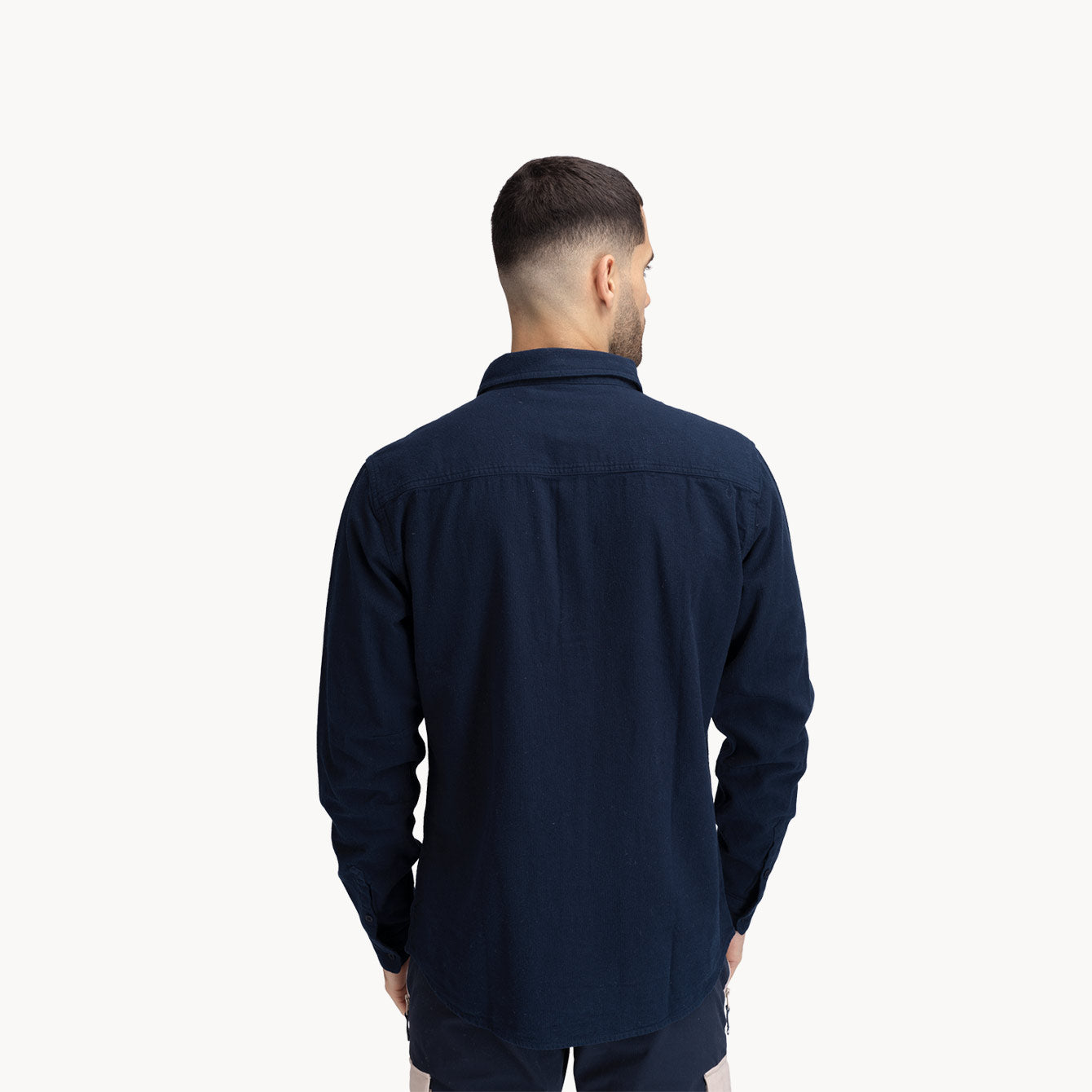 A practical and comfortable flannel shirt made of 100% organic cotton. An excellent hiking shirt! Throw it over a long-sleeved woolen sweater on a walk in the woods and fields, or over a T-shirt when you're going to work - this shirt goes well with most things. The shirt has a button opening in the front, two chest pockets, buttons on the sleeves and buttons on the collar so that the collar retains its fit. It is longer at the back and has slits on the sides and a small logo tag at the bottom of the edge.